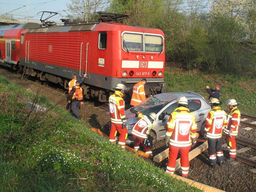 Ungewöhnlicher Einsatz für die Metzinger Feuerwehr im Frühjahr 2011: Ein Auto war von einem Zug erfasst worden. Die Wehr leistete technische Hilfe. ARCHIVFOTO: HOLDER