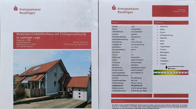 Um dieses Haus in Wittlingen geht es im Prozess zwischen den Käufern Laura Pippig und Roman Raffler und dem Verkäufer. Die Kreissparkasse Reutlingen hat das Haus vermittelt.