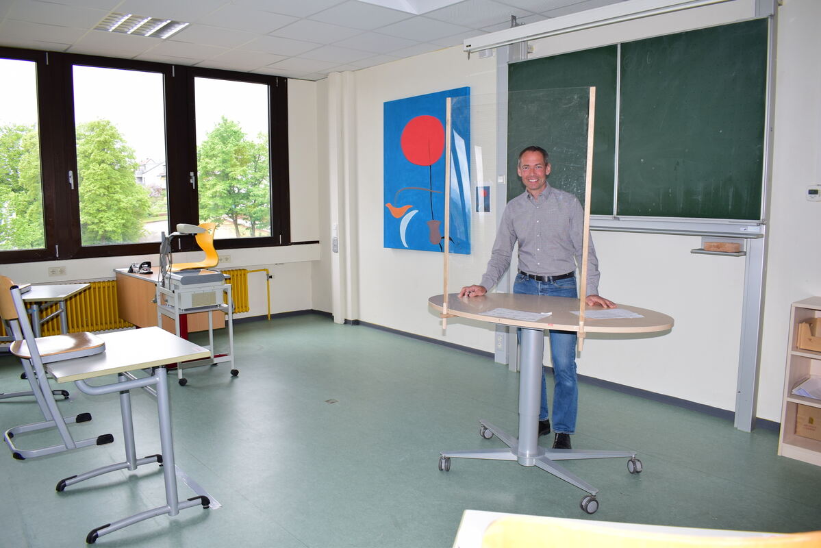 Überall stehen Spender mit Desinfektionsmitteln bereit. Maximal 15 Schülerinnen und Schüler dürfen in die Klassenzimmer. Die Einzeltische sind im Abstand von mindestens 1,50 Metern platziert. Die Schüler der Abschlussklassen müssen – ebenso wie die Lehrer – Masken tragen und dürfen sich nur sehr eingeschränkt in den Schulgebäuden bewegen. Auf den Fußböden werden sie ab Montag Markierungen finden, die ihnen sowohl die vorgeschriebenen Wege als auch die Abstandsregeln zeigen.(GEA)