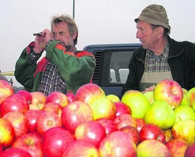 Daraus lässt sich ein schöner Secco machen: Roland Lieb, bei der Dettinger Rosstriebkellerei für die Obstannahme zuständig, prüft mit kritischem Blick durch den Refraktometer den Öchslegrad der gelieferten Haux-Äpfel, die Ernst Fritz geerntet hat.