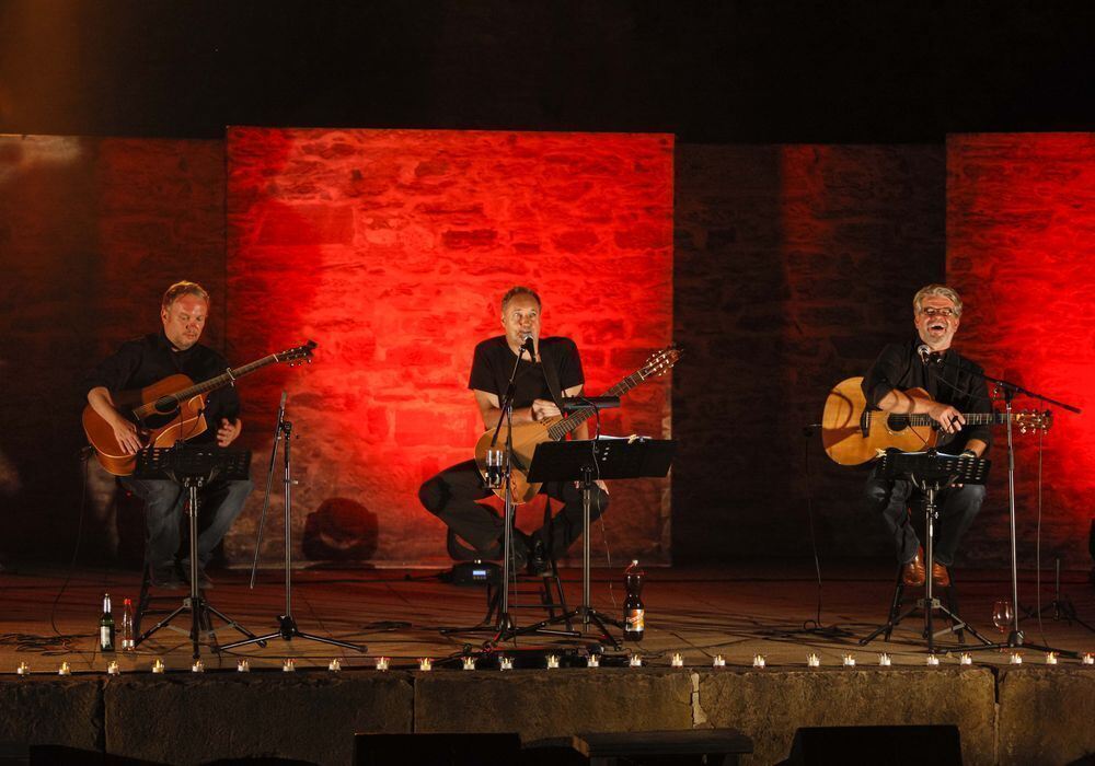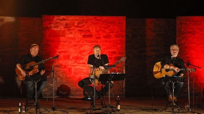 Drei schwäbische Musiker, die den Ausnahmekünstler Leonard Cohen würdigen: Manuel Dempfle, Jürgen Gutmann und Thomas Schmolz. FOTO: LEONHARD-COHEN-PROJECT