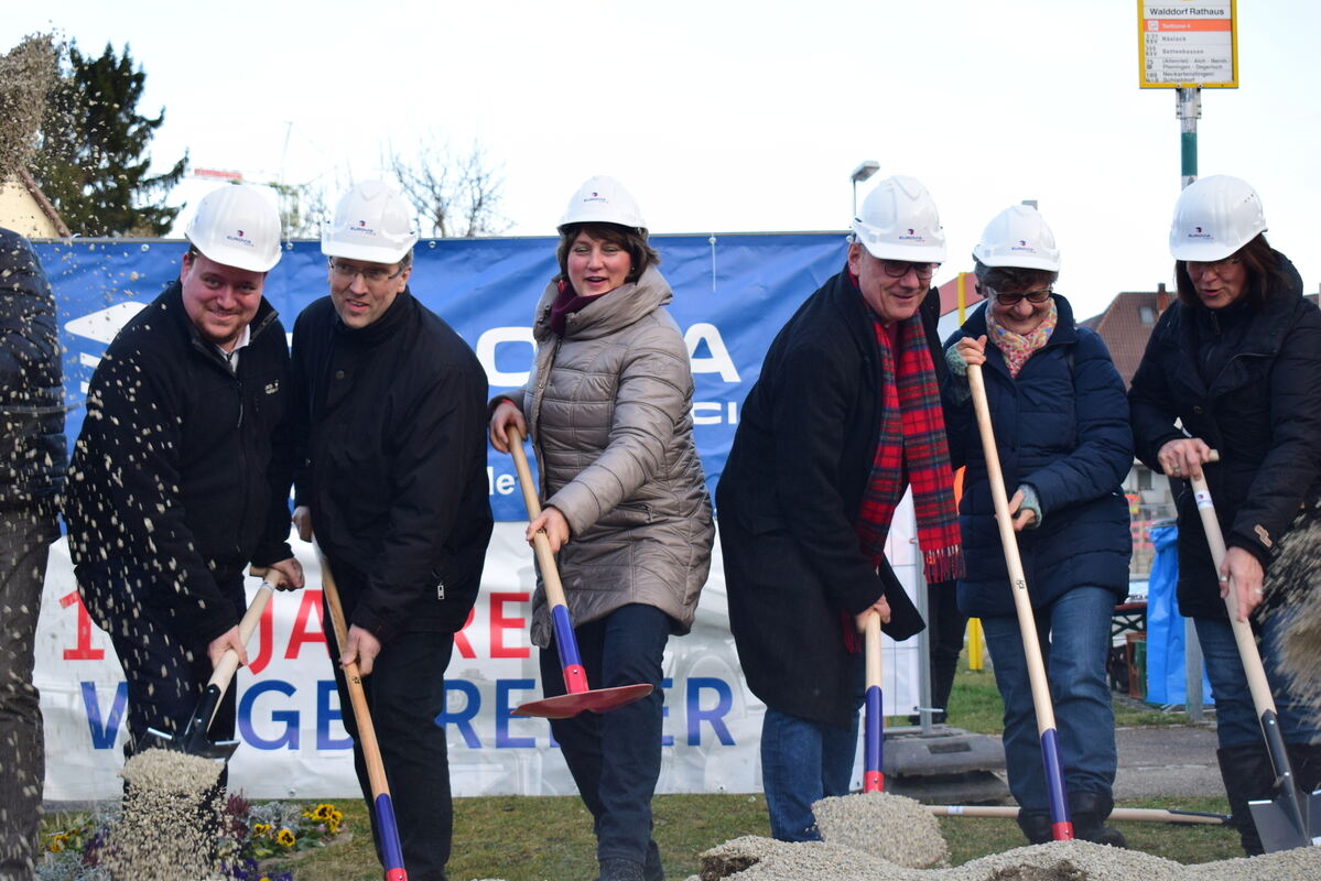 WALDDORFHÄSLACH. Mit gleich mehreren Spatenstichen haben Walddorfhäslachs Bürgermeisterin Silke Höflinger, Gemeinderätinnen und Gemeinderäte sowie weitere am Bau Beteiligte den Beginn für die Umbauarbeiten am Notariatsplatz markiert. Das wollten sich etwa drei Dutzend Männer und Frauen aus Walddorfhäslach nicht entgehen lassen und wurden von der Gemeindeverwaltung zu Häppchen und Getränken eingeladen.