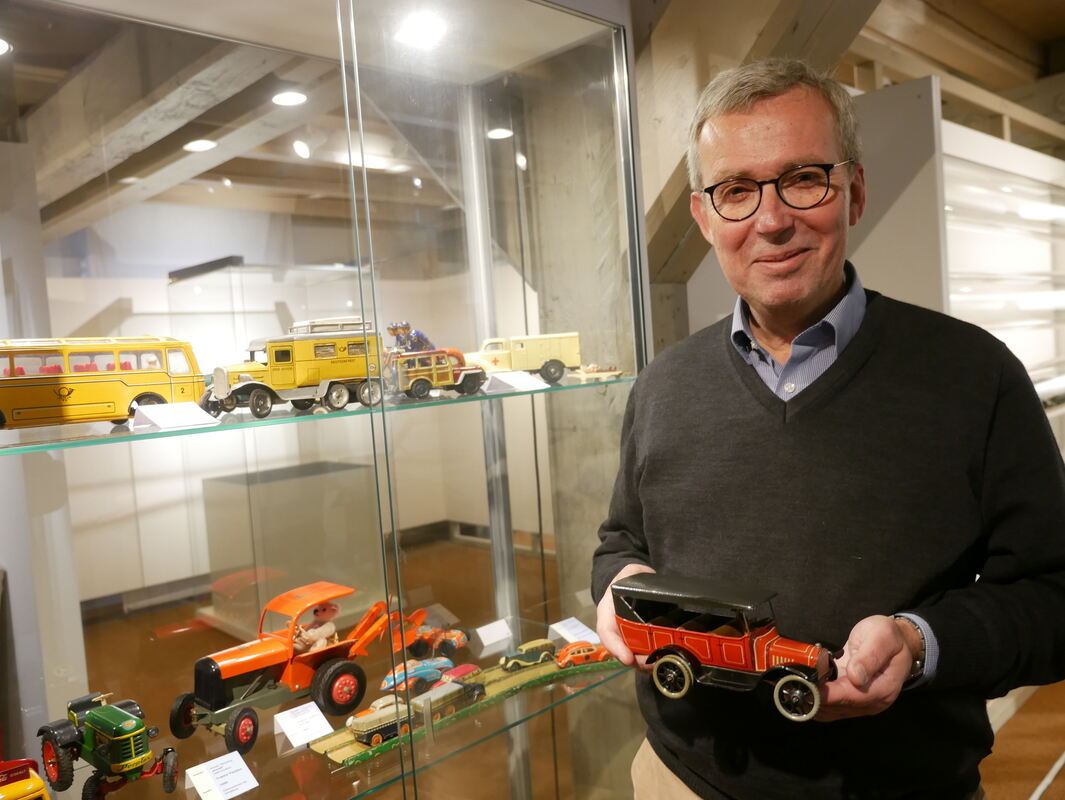 Oldtimer in allen Facetten: Bad Urachs Kulturreferatsleiter Thomas Braun hat die »Kunst im Spiel«-Ausstellung in der Klostermühle zusammengestellt.
