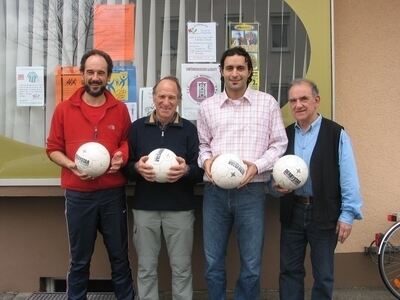 Zizino Teixeira-Rebelo (zweiter von rechts) wurde von Sportlehrer Gerhard Göhner, dem stellvertretenden Fußball-Abteilungsleiter Heinz Straub, und Pressesprecher Fritz Kuhn als neuer Geschäftsführer der TuS-Fußballabteilung vorgestellt.