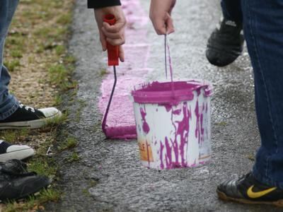 BAD URACH. Bereits in der vergangenen Woche wurde die Farbe für die Spur im Uracher Bauhof angeliefert. Hundertvierundvierzig Eimer à fünf Liter für die 26,4 Kilometer weite Strecke von Grafeneck bis Metzingen. Die größte Menge 45 Eimer brachten die Uracher auf die Straße, die kleinste die Gomadinger: Hier galt es nur, die 200 Meter Straße vom Grafenecker Schloss bis zum Wald Richtung Münsingen zu markieren, die weitere Strecke läuft auf einem unbefestigten Weg, der ausgespart wurde. Der Regen am Dienstag hats gezeigt: Die Spur löst sich wie geplant über kurz oder lang auf. Die Erinnerung bleibt. (and)