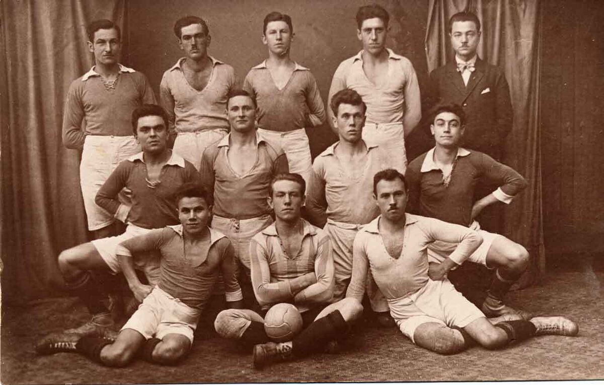 Die Gründungsmanschaft, 1924/25 in der B-Klasse: (von links) Karl Schumacher, Gottlieb Gaiser, Heinrich Ebinger, Eugen Raiser, Vorstand Otto Lutz, Reinhold Koch, Ernst Wurster, Emil Hipp, Robert Baumann, Robert Lutz, August Herrmann, Georg Sauer.