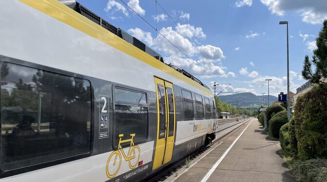 Ein Zug der SWEG Bahn Stuttgart im Bahnhof Metzingen. FOTO: KLEIN