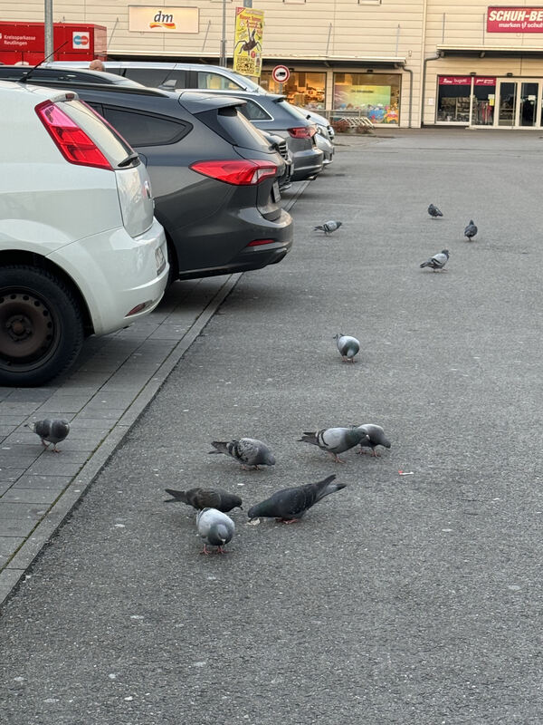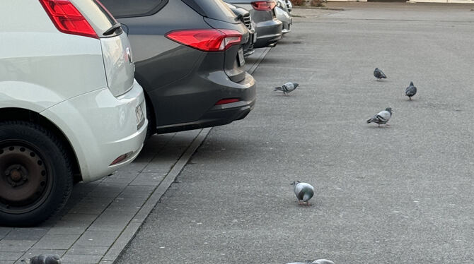 Tauben sind überall wie hier auf dem Parkplatz des Kaufland-Markts in der Stuttgarter Straßen.