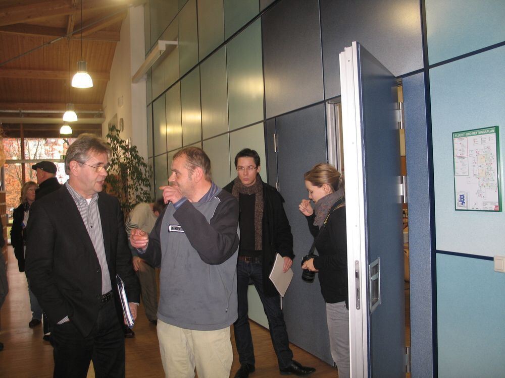 Gerd Weimer nach der Diskussion im vertiefenden Gespräch mit einem der Beschäftigten der Werkstätten der Bruderhaus-Diakonie in Dettingen.