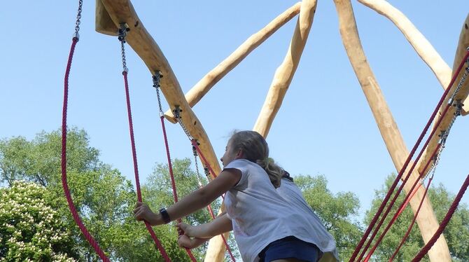 Gleich nach der feierlichen Eröffnung nahmen große und kleine Kinder die neuen Spielgeräte in Besitz. FOTOS: BERNKLAU
