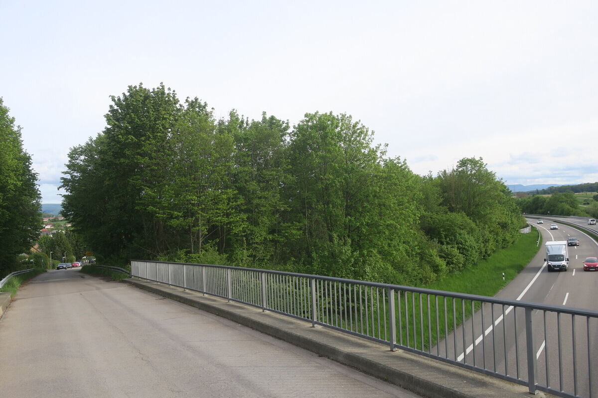 Die B 27 sorgt am Rand von Walddorf im Gebiet Herdweg (links in Verlängerung zur Brücke zu sehen) für eine hohe Lärmbelastung. Die Gemeinde lässt von einem Büro die Ist-Situation ermitteln, Möglichkeiten für mehr Schutz über Bauten wie Wälle und Wände erarbeiten, die ertüchtigt, erweitert oder ergänzt werden. FOTO: MERKLE