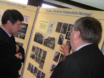 AKS-Vorsitzender Peter Rogosch (rechts) führt Dr. Albrecht Ernst, den Vorsitzenden des Landesverbands der Geschichts- und Altertumsvereine, durch die Ausstellung.