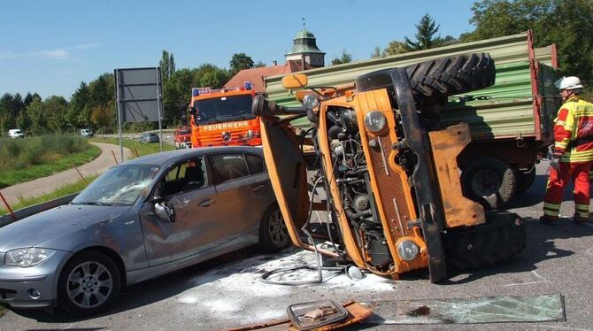 Mittelschwere Verletzungen erlitt der Fahrer des Unimogs.