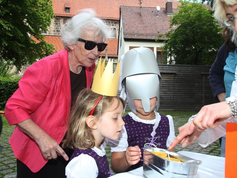 Sie hatten das passende Outfit für den Schlossrundgang gleich an: Sidney (4) und Rachel (6) aus Florida mit ihrer Großmutter Magarete Helmer gestern beim Märchentag in Bad Urach.