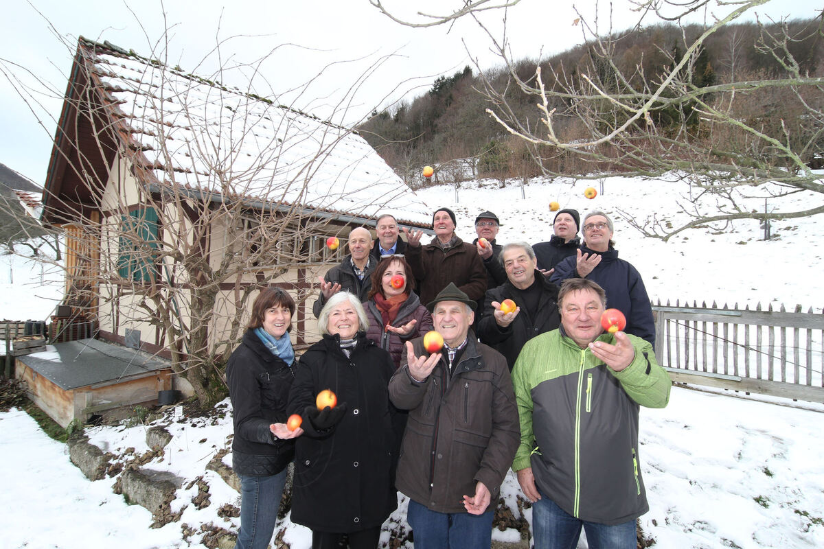 Mit viel Tradition im Rücken will der Obst- und Gartenbauverein Bad Urach – im Bild der Vorstand mit sämtlichen Ausschuss-Mitgliedern im Lehr- und Schaugarten am Galgenberg – auch morgen noch kraftvoll zubeißen. FOTO: FINK