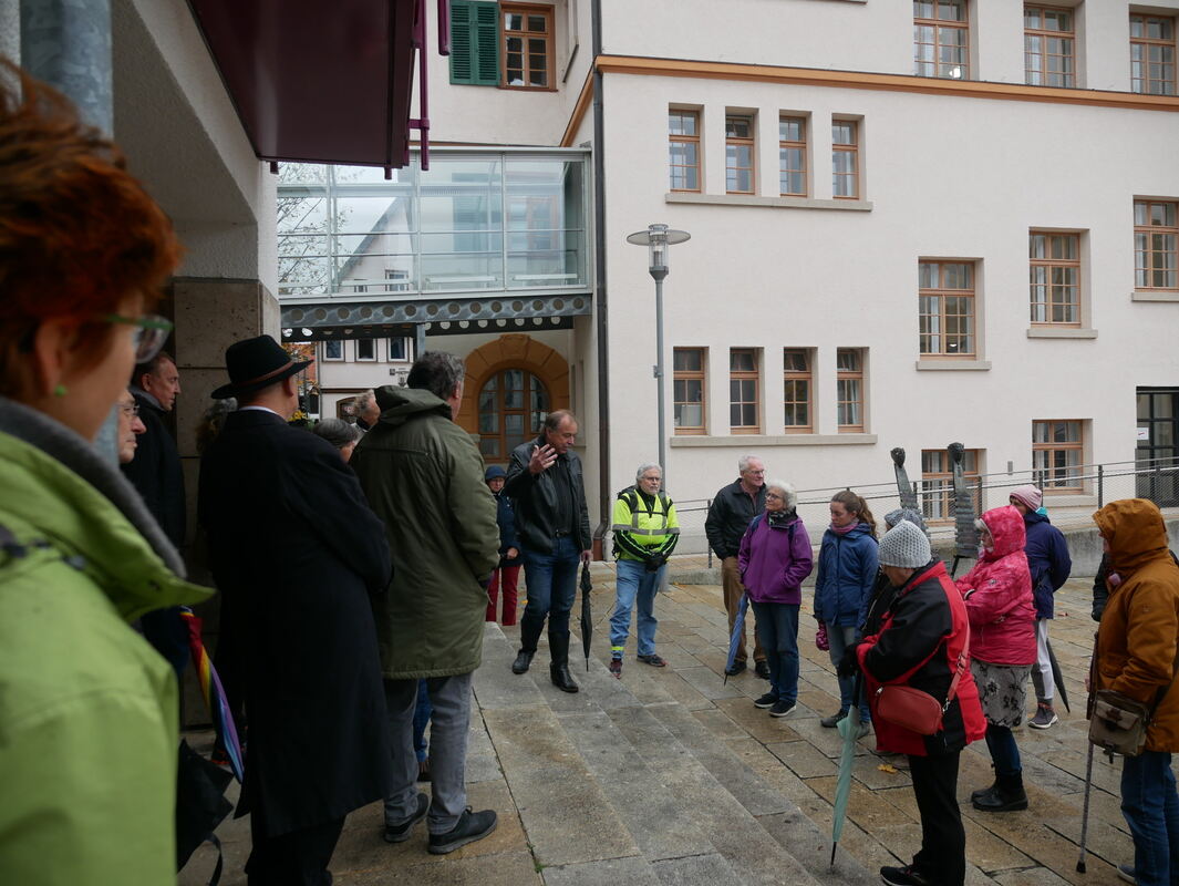 Nach einem Abriss über die Geschichte 1933 auf den Rathaustreppen führte der Stadtarchivar Rolf Bidlingmaier mehr als 30 Interessierte zu einstigen Wohnorten von Opfern der Nazi-Diktatur.