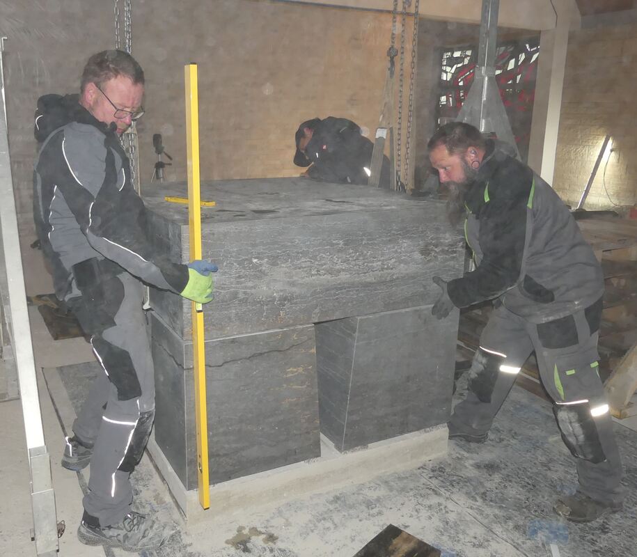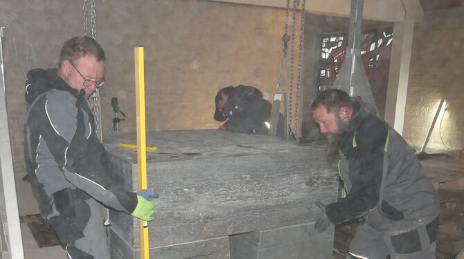 Aus groß mach kleiner: Der Altar wird in der Johanneskirche eingebaut. FOTO: SANDER