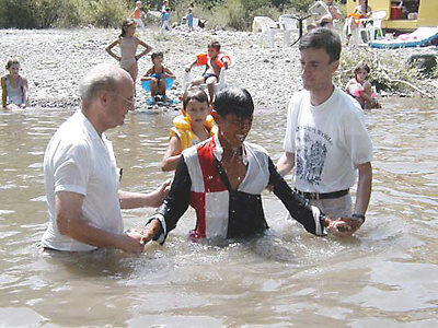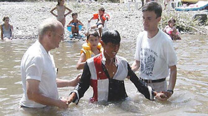 Hans, der Täufer, aus Pliezhausen (links): 20 bis 40 Menschen pro Jahr werden von ihm zum Christentum bekehrt. Das Ritual im Fluss gehört dazu.