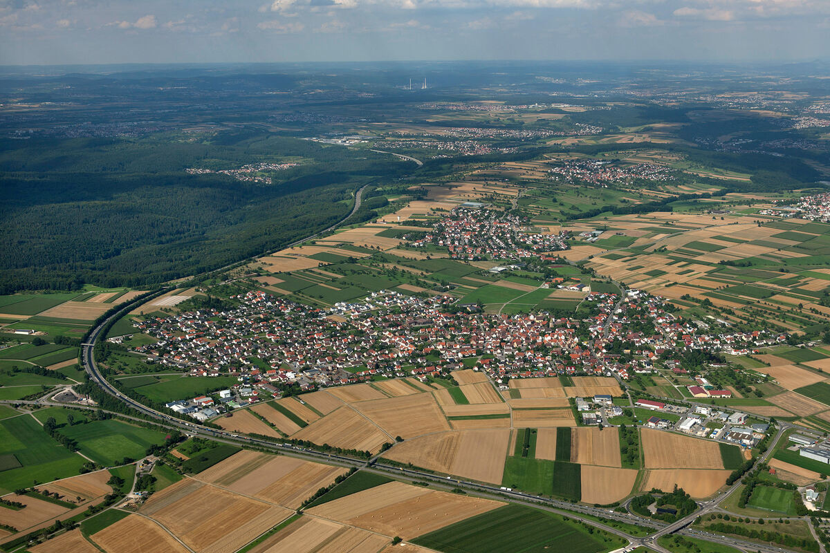 In Walddorf (vorne) und Häslach (Bildmitte) haben die Kommunalpolitiker 17 Wohngebiete in die engere Auswahl genommen. Doch damit dort Häuser entstehen, müssen die Eigentümer einverstanden sein. Darum verfolgt der Gemeinderat nun nur noch ein Wohngebiet.