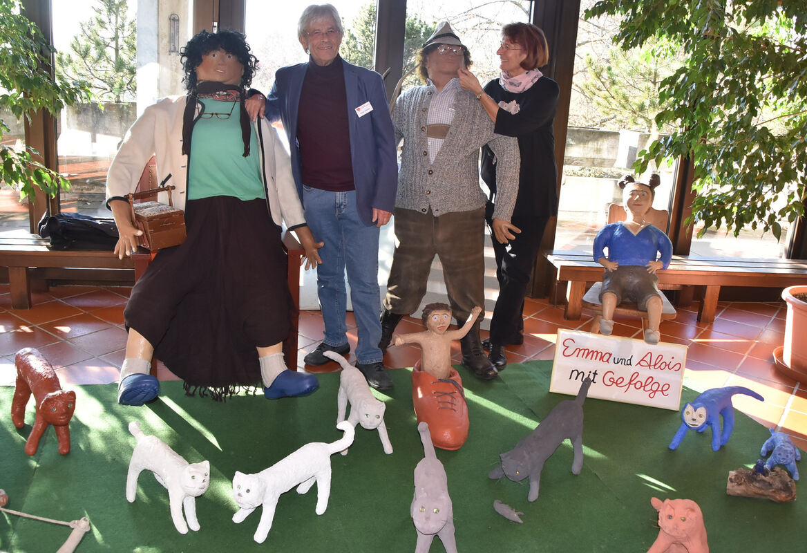 Hingucker aus Zement: Emma und Alois mit ihrer »Familie und Gefolge«. Dieter Schellein und Renate Fischer haben sie geschaffen und ausgestellt. FOTO: SANDER