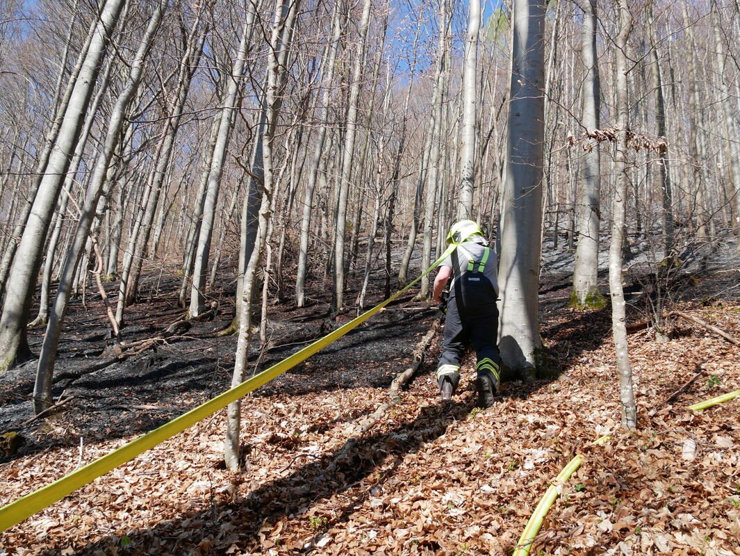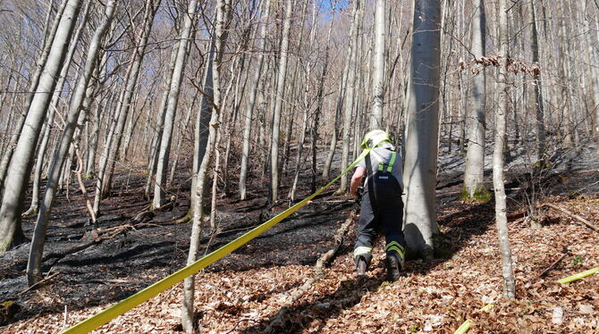 »Ein ungewöhnlicher Einsatz«, sagt Stadtbrandmeister Wolfgang Dörner, »das haben wir nicht alle Tage. Kleinere Brände im Außenbereich kommen schon mal vor, tausend Quadratmeter im Wald – und das auch noch im Steilhang sind schon eine andere Nummer.«