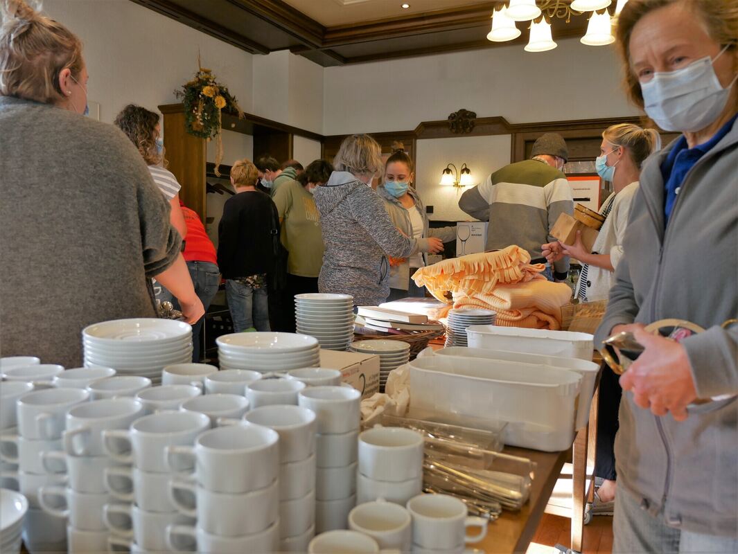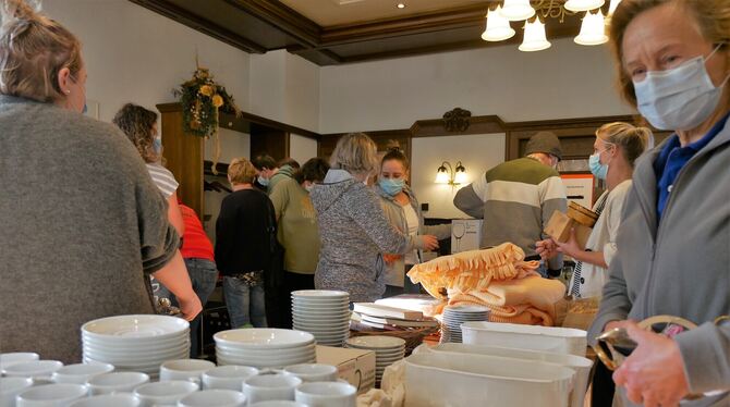 Ein Traditionsgasthaus wird abgewickelt: Beim Flohmarkt im »Waldhorn« in Glems gab’s bergeweise Geschirr, Besteck und Gläser, aber auch Tische und Stühle sowie Dekoartikel.