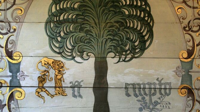 In Bad Urach hat sich ein früher Nachweis von Graf Eberhards Wahlspruchs erhalten: auf dem 1472 entstandenen Betstuhl des Grafen, der in der Amanduskirche zu sehen ist. Im Uracher Schloss ist nicht nur die älteste Darstellung von Graf Eberhards Palme zu finden. Das Gebäude beherbergt rund 50 Stück der exotischen Gewächse – in Form von Malereien an Wänden und Türen. Im Palmensaal präsentieren sich die namensgebenden Pflanzen am eindrucksvollsten: Acht monumentale Palmen »wachsen« an den Wänden empor und tragen die Wappen der Urgroßeltern Graf Eberhards. Hier steht die Palme mit ihren ausgreifenden Wedeln. Im Goldenen Saal, der zu Zeiten Eberhards noch den Namen »Gläserne Stube« trug, zieren die Palmen neben den Wänden die Prunkportale und einen Ofen. Doch die Palme ist nicht das einzige Außergewöhnliche im Residenzschloss Urach. Bei den Sonderführungen am 15. August und 5. September geht es auf Spurensuche durch die Epochen. Eine Anmeldung ist erforderlich. (pm)