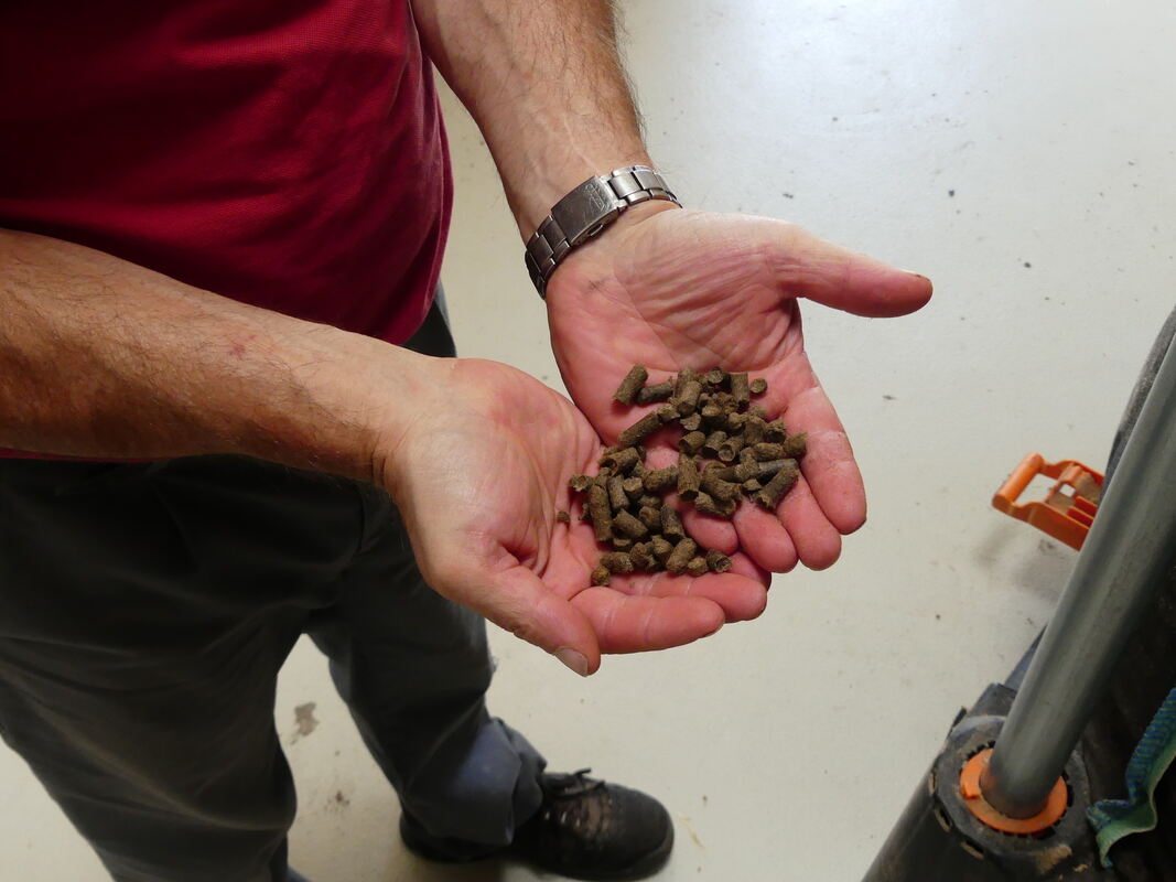 Wenn die geschorene Wolle bei ihm ankommt, wird sie noch thermisch behandelt, um mögliche Bakterien abzutöten. Danach zerkleinert eine Maschine die Schafwolle in sehr kleine Teile, und am Schluss wird alles zusammengeprest. Das Wollfett hält die Pellets zusammen. Der Kreislauf der Wertschöpfungskette schließt sich somit. Die Möglichkeit, der Schafwolle noch ein bisschen Wert zu geben, kommt auch bei den Schäfereien aus der Region gut an. Darum geht es Alexander Bosch auch: Die Schafhaltung in der Region zu unterstützen und zu erhalten.