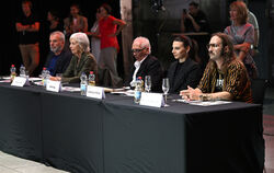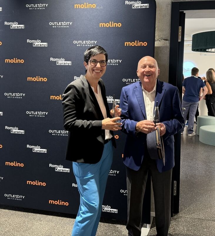Wolfgang Bauer (rechts am Mikrofon), Vorstandsvorsitzender der Outletcity AG, brachte die Premierengäste im Museum zum Schmunzeln.