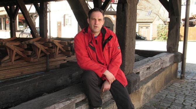 Zum Gespräch am Kelternplatz ist der erst 37 Jahre alte neue Vorsitzende des Albvereins Metzingen, Heiko Luz, in Wanderkleidung gekommen. Im Anschluss ging es hoch auf den Wiesfels, ein freier Tag, den Luz in der Natur genießen wollte.