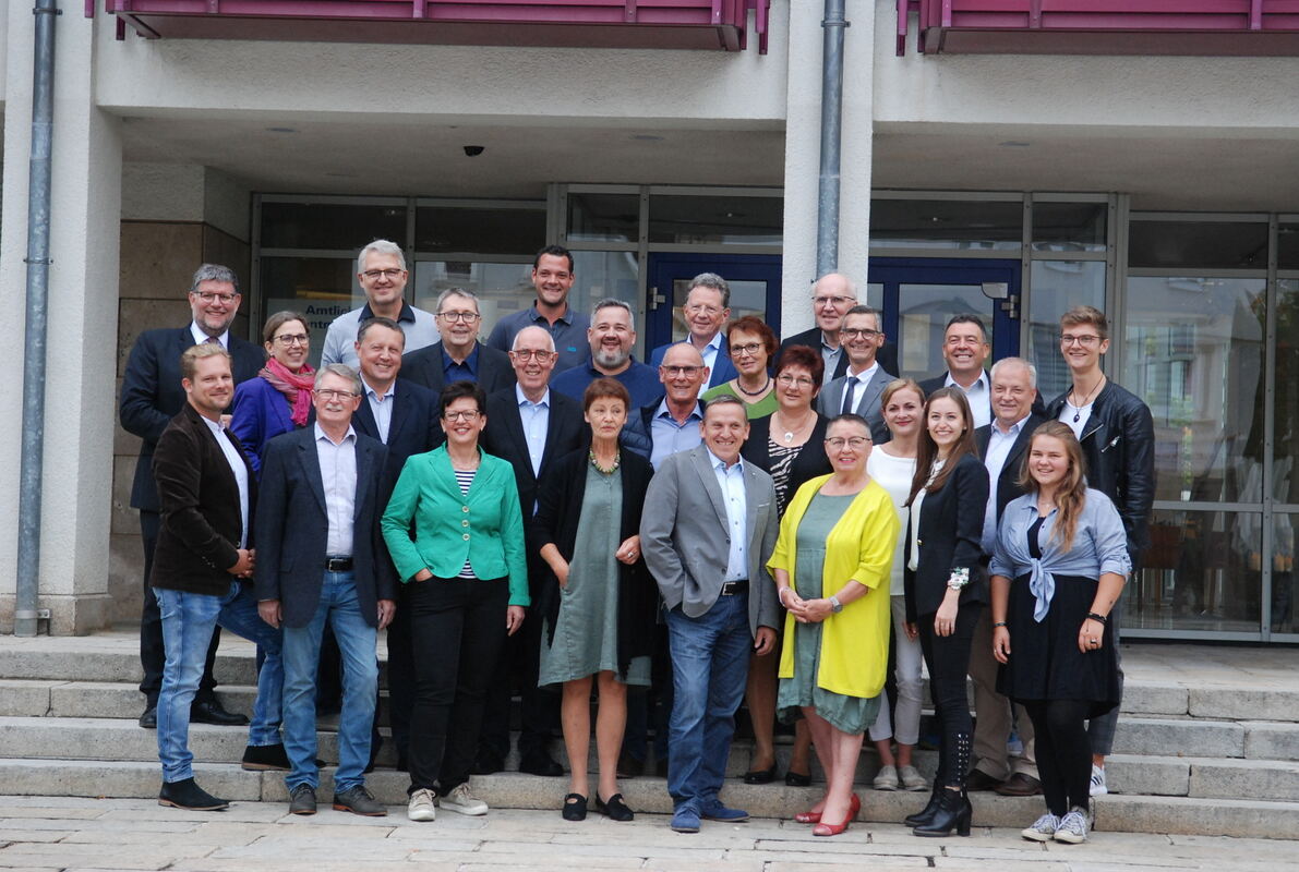 Der noch amtsjunge Metzinger Gemeinderat vor seiner ersten Arbeitssitzung im September vor dem Rathaus. Vorne von links: Florian Salzer, Albert Welz, Karin Theis, Dr. Christiane Hauber, Andreas Seiz, Ulrike Sippli, Isabel Aurenz und Franziska Fora. Dahinter Eckart Ruopp, Bernhard Mohr, Michael Breuer, Lilli Reusch, Isabelle Wohlauf und Stefan Köhler. In der dritten Reihe Susanne Bernauer, Peter Rogosch, Bernd Hettich, Cornelia Grantz-Hild, Robert Schmid, Klaus Rümmelin und Nico Schmitt. Und ganz hinten Oberbürgermeister Dr. Ulrich Fiedler, Holger Weiblen, Robert Bahnmüller, Dr. Georg Bräuchle und Reinhard Brandt. foto: pfisterer
