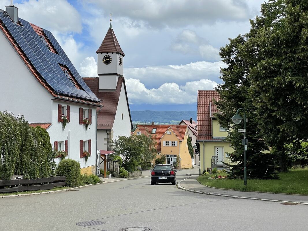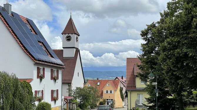 Dorf mit Aussicht: In der Ortsmitte von Dörnach bietet sich hinter der Kirche ein toller Blick auf den Albtrauf. FOTO: KLEIN