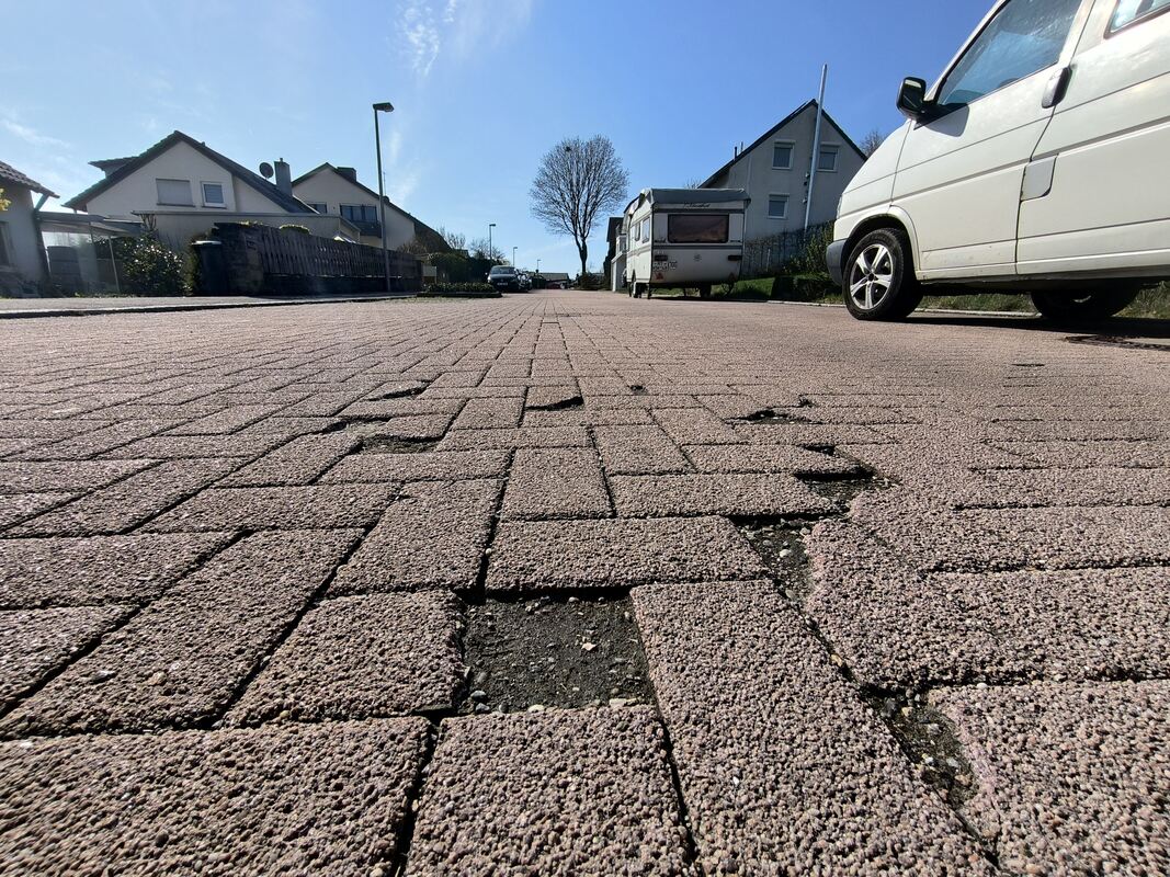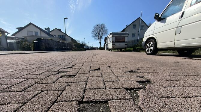 Die Pflasterflächen in der Wannweiler Gustav-Werner-Straße sind in einem desolaten Zustand. Der Gemeinderat überlegt jetzt, ob sie saniert oder durch Asphalt ersetzt werden sollen.