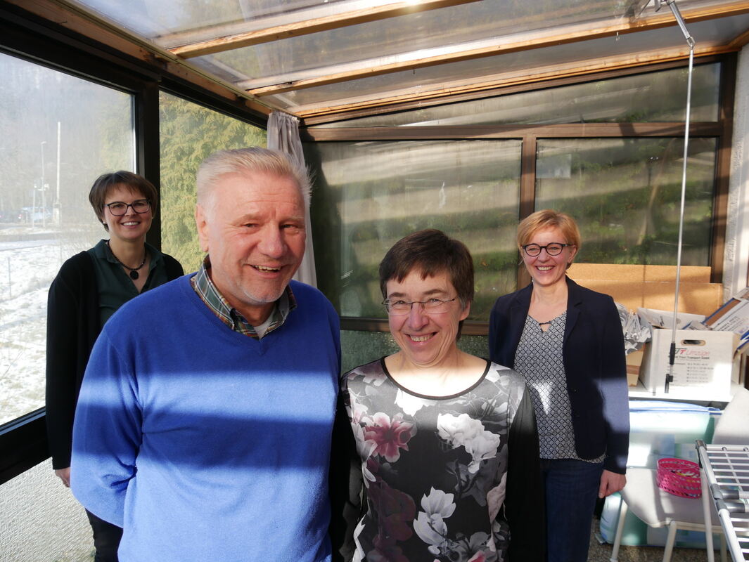 Die Diakoniegesellschaft Oberes Ermstal-Alb ist 2007 mit ihrer Zeitintensiven Betreuung (ZiB) an den Start gegangen. Im Bild (von links) Christine Krohmer, Geschäftsführerin der Diakoniestation Oberes Ermstal-Alb, die Ehrenamtlichen Heinz Lamparter (Münsingen) und Friedeborg Frick (Bad Urach) sowie Helga Neuhaus, die die ZiB Ermstal-Alb koordiniert. FOTO: FINK