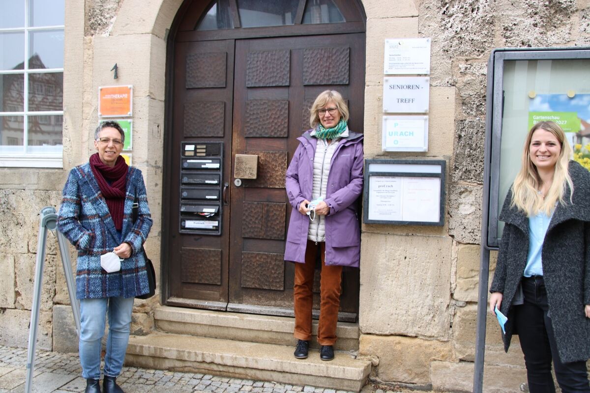 Silvia Phleps von der DRK-Fachstelle (links), Christel Meixner vom Netzwerk Demenz Bad Urach und Ann-Katrin Rüstau, die in der Pflegestützpunkt-Außenstelle Bad Urach arbeitet. FOTO: OECHSNER