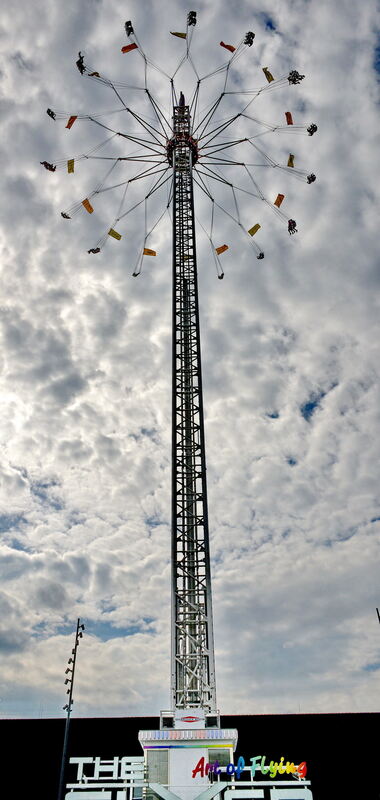 Seit Freitagmittag dreht sich The Flyer, das ultrahohe Kettenkarussell auf dem Hugo-Boss-Platz, bis zum 24. Oktober, immer von 12 bis 21 Uhr. Leni Kuhn war nicht zum letzten Mal oben. (pfi)
