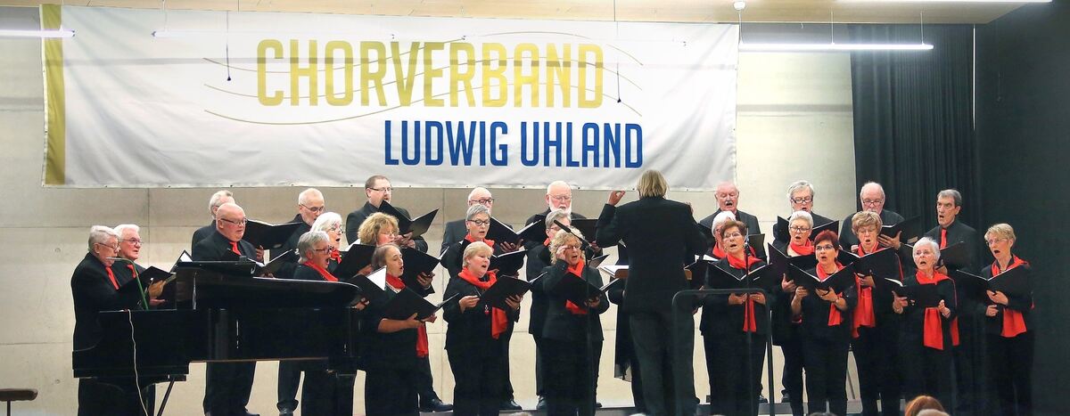 Der Ludwig Uhland Chor unter der Leitung von Jürgen Knöpfler singt in der Dußlinger Kulturhalle.