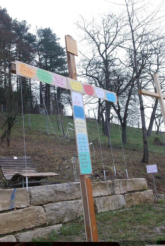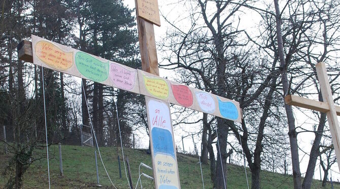 Botschaften am Kreuz Christi am Osterpfad im Metzinger Weinberg. FOTO: PFISTERER