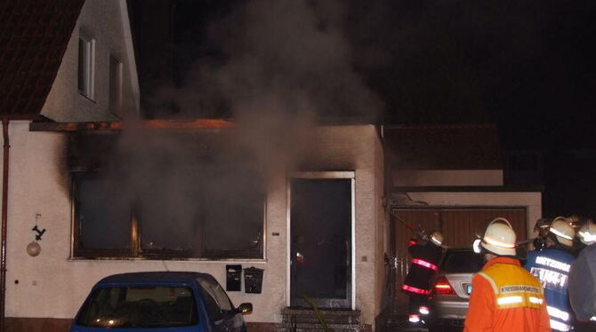 Meterhoch schlugen die Flammen aus dem Haus in der Grundstraße. FOTO: MUT