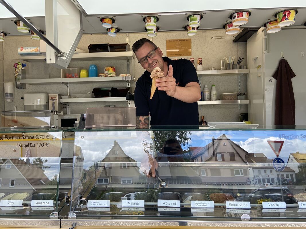 Marcus Worlitschek verkauft sein Wois-net-Eis in Walddorfhäslach.