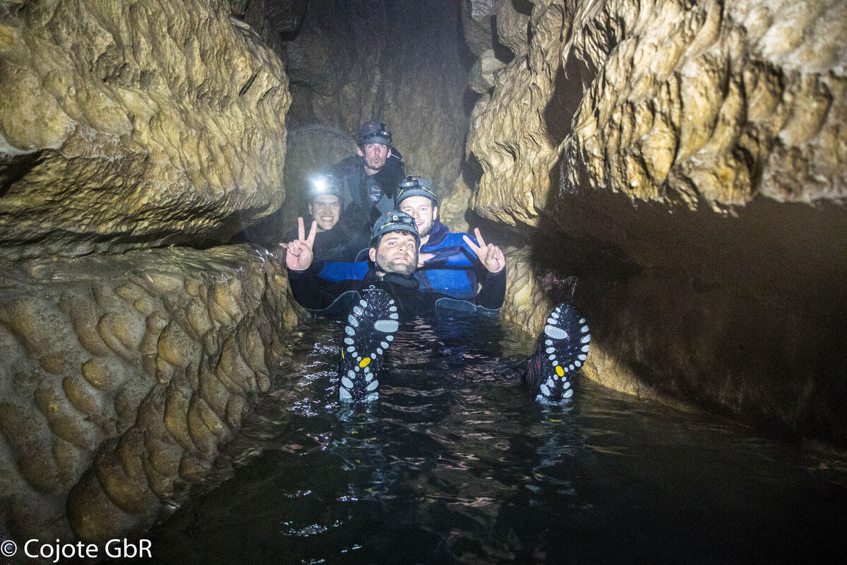 Spaß im Bauch der Erde: Der Uracher Veranstalter »Cojote Outdoor Events« bietet in der Falkensteiner Höhle geführte Touren an. Mythos Schwäbische Alb, die Tourismusgemeinschaft des Landkreises Reutlingen, hofft, dass der lokale Anbieter damit auf der CMT den »Outdoor-Award Baden-Württemberg« gewinnt. FOTO: COJOTE
