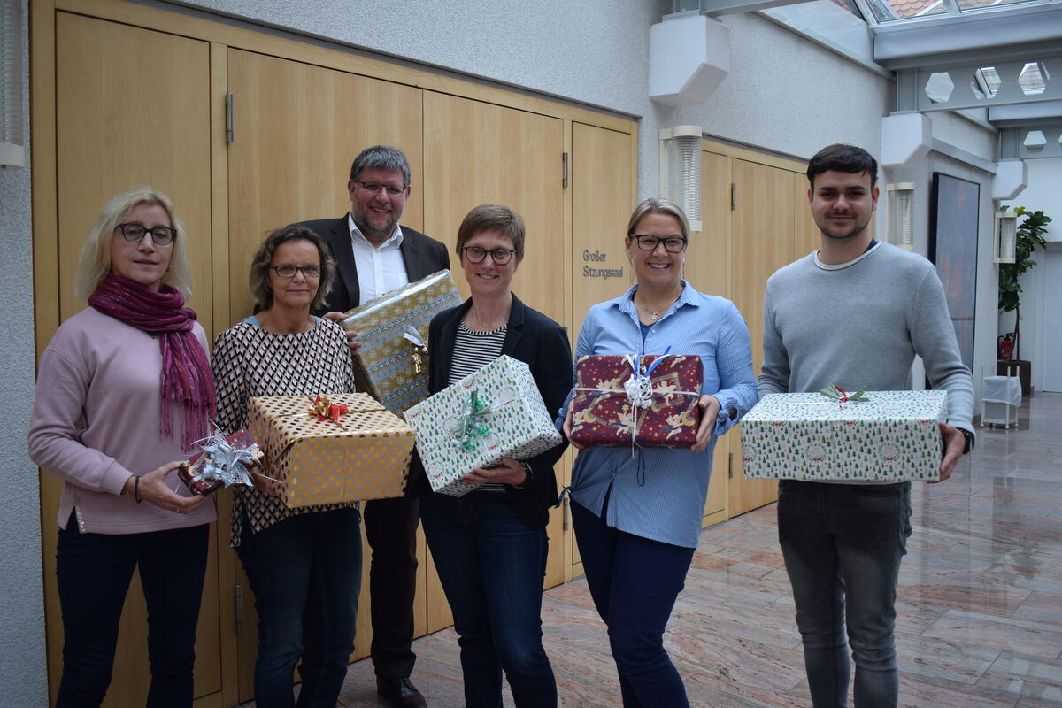 Sie wollen helfen, Kinderwünsche zu erfüllen (von links): Christa Herter- Dank vom Familienzentrum, Karin Jirasek vom Kinderkörble, Oberbürgermeister Dr. Ulrich Fiedler, Susanne Bauer von der Diakonischen Bezirksstelle sowie Meike Hespeler und Nicolay Dietrich von der Metzinger Marketing und Tourismus GmbH. FOTO: FÜSSEL