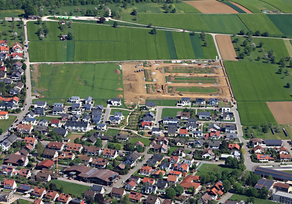 Das Neubaugebiet »Fürhaupt II« in Walddorf nimmt Gestalt an. Auf fünf Hektar Fläche sollen dort rund hundert neue Bauplätze untergebracht werden. Wer einen Bauplatz erwerben kann, der muss innerhalb von drei bis fünf Jahren bauen – darauf legt die Gemeinde allergrößten Wert, denn Baulücken darf es dort nicht geben. LUFTBILD: MANFRED GROHE