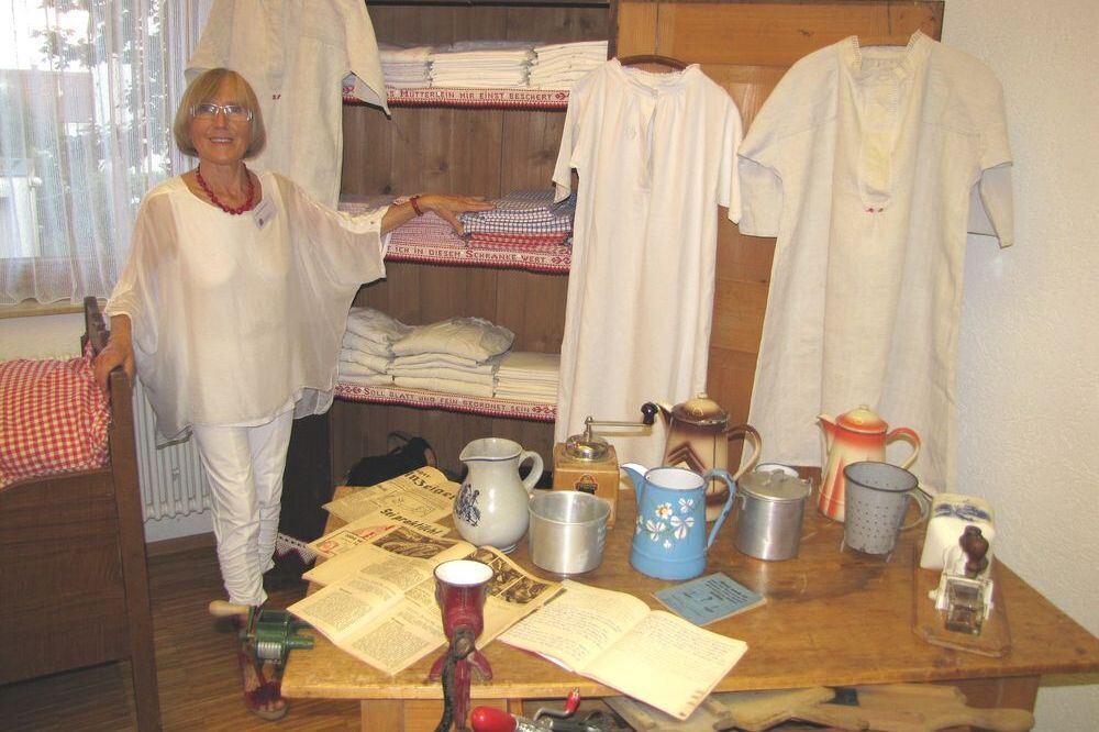 Erika Armbruster zeigt die Schätze, die der Kulturgüterverein über zehn Jahre in Walddorfhäslach zusammengesammelt hat.