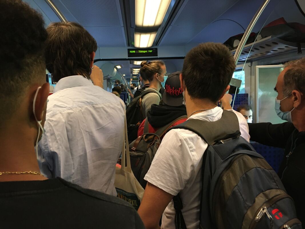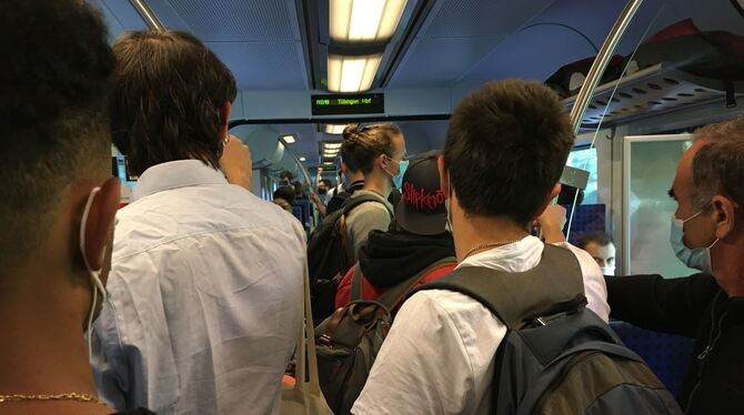 Zug von Stuttgart nach Metzingen: Gedränge in Coronazeiten