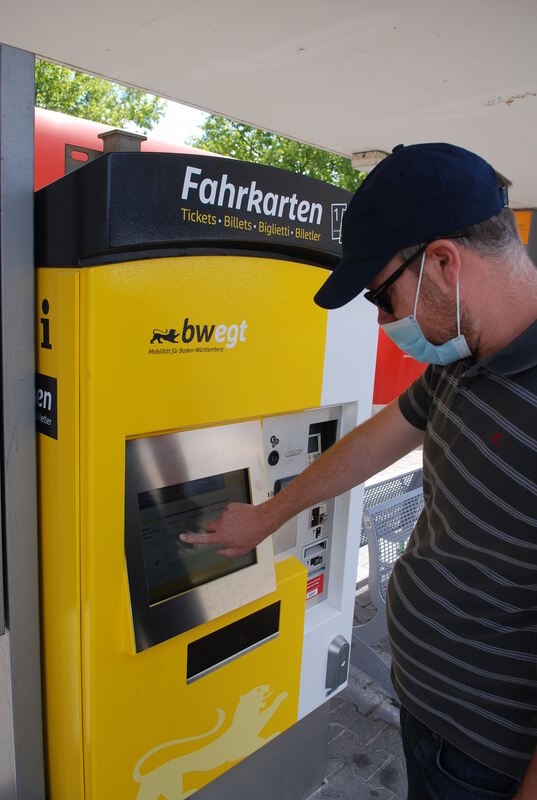 Malte Klein versucht an einem neuen Abellio-Fahrkartenautomaten in Metzingen ein Fernverkehrsticket in seine alte Heimat Bremen zu lösen – ohne Erfolg. FOTOS: PFISTERER