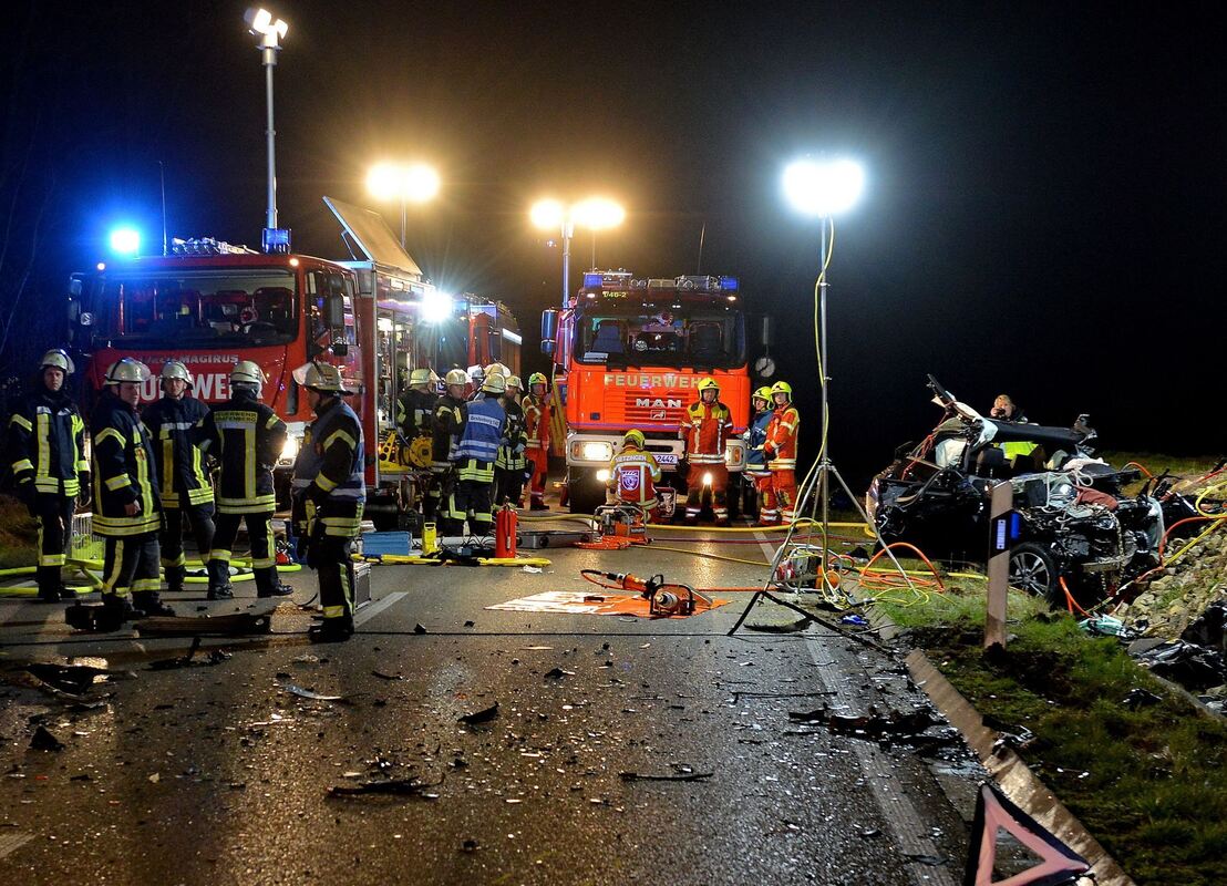 Ein großes Aufgebot an Rettungskräften war im Einsatz: Polizei, mehrere Rettungsfahrzeuge, ein Notarzt und die Feuerwehr mit sieben Fahrzeugen und 42 Einsatzkräften. Die Straße war mehrere Stunden gesperrt, die Bergungsarbeiten gestalteten sind nach Polizeiangaben kompliziert.