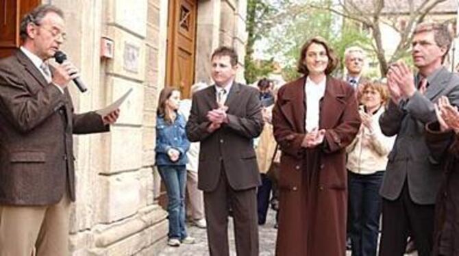 Applaus der drei Kandidaten Hartmut Steinacher, Silke Höflinger und Hans-Jörg Schraitle (von rechts) als Manfred Klein die Wahlbeteiligung bekannt gibt. Wenig später ist auch das Ergebnis klar. Da hatten dann nur noch Höflinger und Schraitle Grund zur Freude.