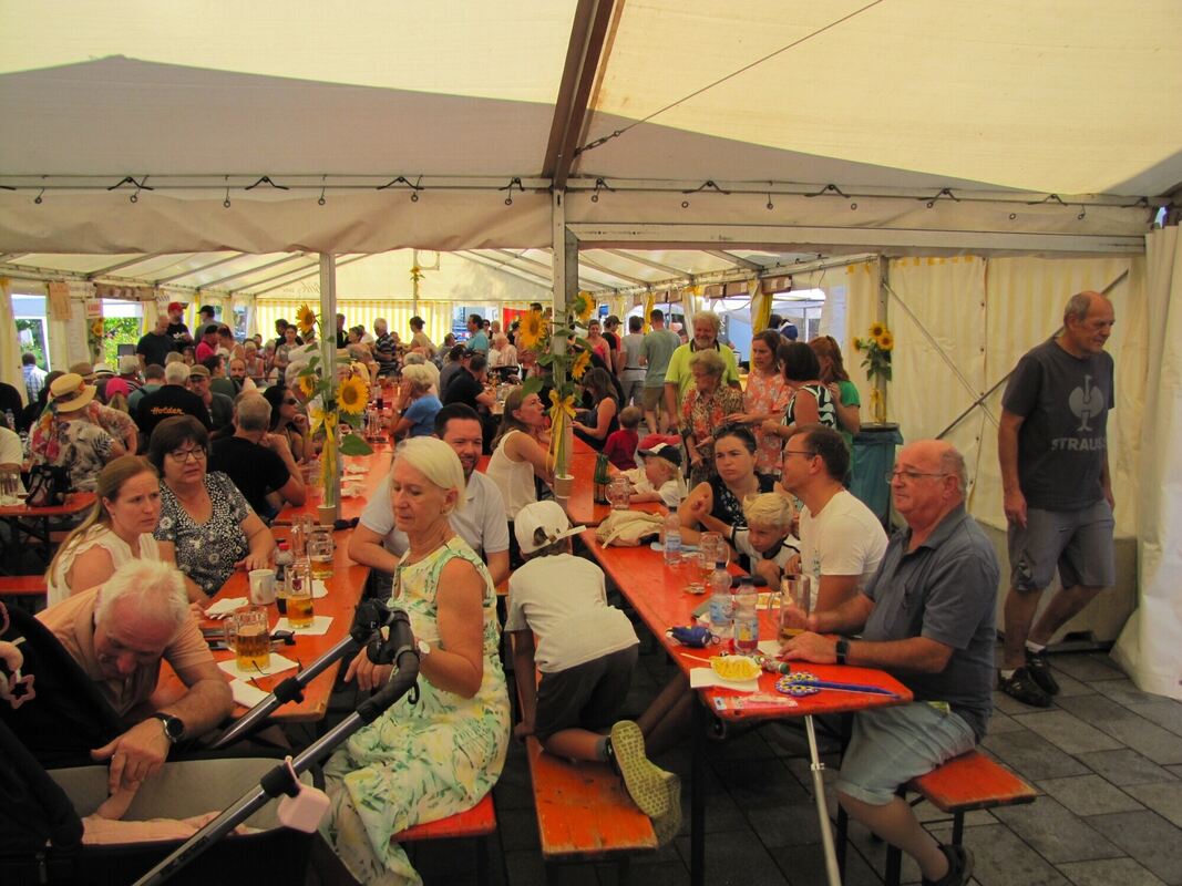 Sonne, Sonnenblumen, Stimmung: Sowohl bei Simon Wild am Samstag als auch zum Frühschoppen oder -bier am Sonntag war das Festzelt des Liederkranzes Walddorf voll.