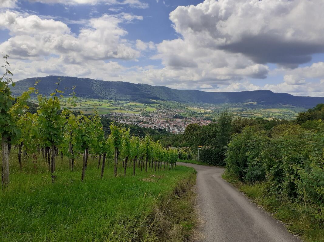 So schön ist der Ströhmfeld-Weg: Blick vom Metzinger Weinberg auf das Ermstal und den Albtrauf.
